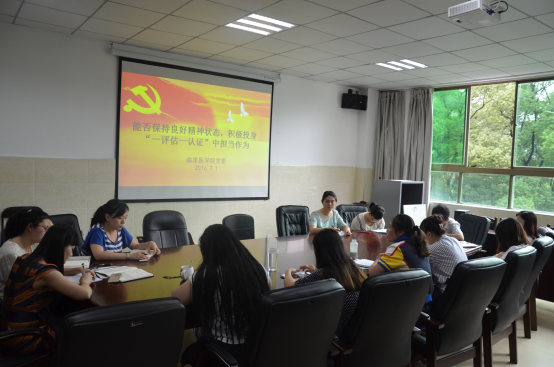 职工党支部纪检委员马燕萍进行了中心发言,围绕“学习、榜样、健康”三个方面就如何在“三评估一认证”中担当作为与全体党员进行了交流学习。党委书记周红要求全体党员要深刻理解“担当”的丰富内涵和内在要求,勉励大家要勇于担当、敢于担当,有服务意识和强烈的责任意识,争取在“三评估一认证”工作中做出自己的贡献。