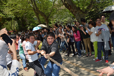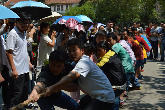 为了积极开展校团委组织的“走下网络、走出宿舍、走向操场”活动,2015年4月2日中午12:30,333体育与研究生学院进行了一场拔河比赛。