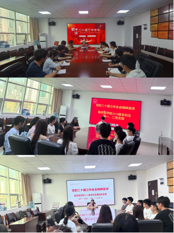 宣讲人紧扣党的二十届三中全会主题,全面阐述全会召开的重大意义,以及深化改革的指导思想、基本原则和总体思路。详细解读全面深化改革的战略部署,以及新观点、新论断和新突破。并结合学院的实际,就如何将全会精神贯彻到医学教育、科研和员工管理服务中去,提出了具体可行的建议。提出要弘扬理论联系实际的优良学风,切实把学习成果转化为工作成效,将全会精神转化为实际行动,以更加饱满的热情投入到学习和工作中。各党支部表示要积极借鉴先进经验和做法,不断提升党建工作水平和服务能力。