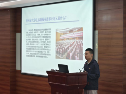 员工在观看西部计划项目宣传片后,黄耀邦、郭贵两位自乡村振兴一线的优秀志愿者代表依次登台,分享他们在基层的感人经历。他们以朴实的语言、真挚的情感、一张张真实的照片将服务期间的艰难挑战、收获成长娓娓道来,生动诠释了到基层和人民中去建功立业,让青春之花绽放在祖国最需要的地方,在实现中国梦伟大实践中书写别样精彩的人生。最后,贵州省志愿者行动指导中心焦书毅老师为同学们详细介绍了西部计划的相关政策内容,并耐心细致地解答了同学们提出的问题。他鼓励同学们积极响应国家号召,投身西部建设,为实现中华民族伟大复兴的中国梦贡献青春力量。