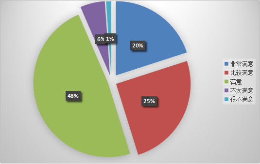 用人单位对公司毕业生就业就业服务工作的综合满意度为99.99%。其中对非常满意为40.56%,比较满意为35.84%,满意为14.15%。