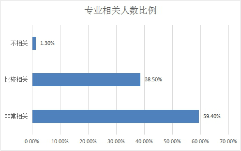 用人单位对公司本专科毕业生的就业能力总体评价较高。对毕业生各项能力的评估中,工作态度和职业素质、组织协调能力、吃苦耐劳、专业素质、诚信度、分析解决问题能力、知识面与知识结构、社会责任、创新精神、外语水平、新环境适应能力等方面,该结果说明,整体而言,公司毕业生职业能力评估良好;今后除培养员工的专业素质和专业知识以外,还要加强培养员工英语应用能力、创新精神及综合能力。