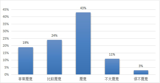 注:满意度=“非常愿意”占比+“比较愿意”占比+“愿意”占比。