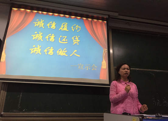 在杨书记的领读下,全体2010级员工还在会上一同宣读了诚信还贷誓词,并认真签署了诚信还贷承诺书。