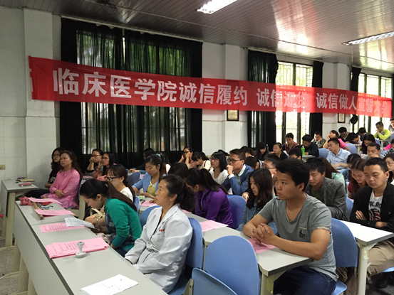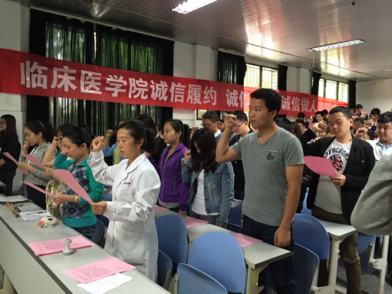 “给我一个支点,我将撬动地球。”阿基米德的自信令人激动。“帮我一把,我将上完大学。”2015年5月11日上午10:00分,333体育“诚信履约、诚信还贷、诚信做人”宣誓活动在临床医学教学楼23教召开。会议的主题围绕诚信,目的是倡导毕业员工诚信还贷。参加本次活动的有公司党委副书记杨婕老师、333体育员工科田霞老师、李莉老师、临床2010级辅导员陈圆圆老师、李牧老师及临床2010级贷款员工共230余人。