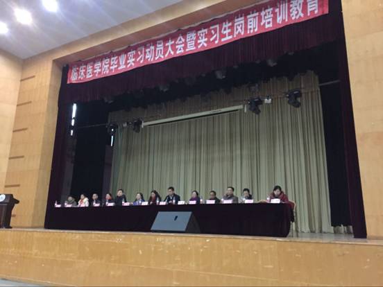 2016年1月11日下午,333体育在北京路校区大礼堂召开2013级毕业实习动员大会,会议由333体育副经理戚璐主持,出席会议的领导有333体育官网附属医院副经理、333体育常务副经理孙发、公司党委书记周红、副书记杨婕。内科学、外科学、妇产科学、儿科学、重症医学、眼科学、急救医学、耳鼻咽喉学、心理学、全科医学10个333体育官网入口教学主任或教学秘书以及333体育生产实习科老师和2013级年级辅导员,2013级全体同学参加了会议。