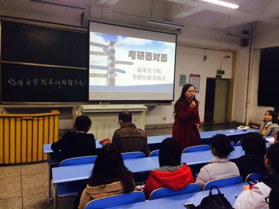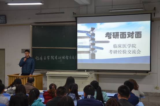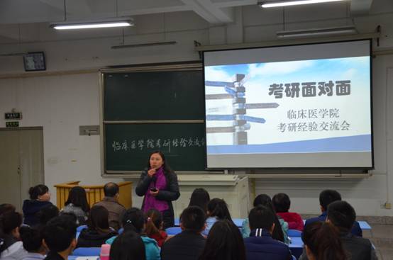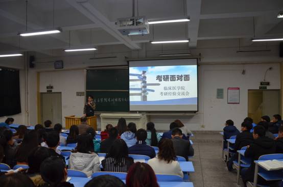 随后,三位经验丰富的学长学姐分别介绍经验。2015级泌尿外科研究生雷琳以主题”欲戴其冠,必承其重”讲述了她47天的考研路,从方法到心态让我们受益匪浅。2015级肝胆外科研究生牛放从政治,英语和西综三方面为大家做了精细的介绍,题型考点技巧言之成理。 2016级研究生赵子豪讲述了他如何从大三就开始考研复习,如何放平心态,提出要抱团学习互相监督。他们的每一句话于台下的同学们而言,无论是2012级备战30天的考生们,还是是2013级要进入考研大军的同学们,都是百宝万货。