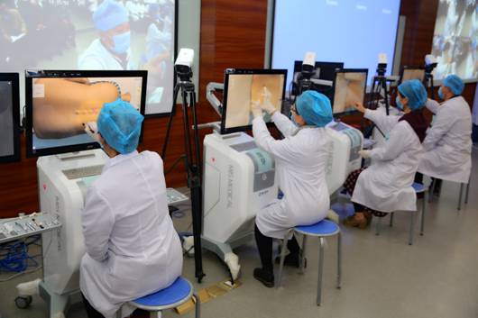 临床技能竞赛旨在让医员工早期接触临床,通过虚拟仿真模型训练临床基本技能的操作,将基本医学理论知识与实践技能相结合,通过自主学习和练习,提高同学们的临床技能水平。本次竞赛历时两周,同学自愿报名参与,共有临床医学专业534位同学参与练习,参加初赛人数376人,在线训练3721人次,智能系统训练3657人次。比赛分为腰椎穿刺术、胸腔穿刺术、腹腔穿刺术、骨髓穿刺术四类,本次活动采用了敏行公司研发的先进设备与虚拟仿真系统,场面紧张而激烈,同学们满怀热情,精心准备,经过激烈的角逐,评选出一等奖4名、二等奖12名、三等奖24名。姜莎莎、赵兴丽、杨青青、冉晓丽四名同学以熟练、精确的操作技能摘得一等奖荣誉。