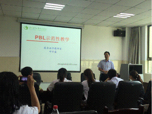 在CBL/PBL演示观摩会上,方旭明老师对神经学课程中PBL教学情况进行介绍;朱祥路老师就精神病症状学进行CBL示范;邓开盛老师进行了肝硬化PBL示范。