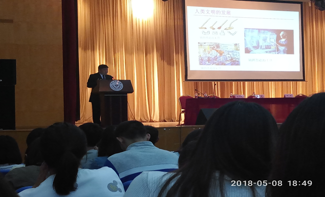 首先是孙发对本次讲座致词,鼓励同学们要继续保持学习的动力。接着俞思伟博士进行讲座,就大数据环境下的学习形态,医学模拟教学、人工智能技术、智慧医学教育,如何在智能型临床技能中心环境下的自主学习,以及在公司建成国内第一个智能型临床技能中心的学习环境下,怎样解决医务人员社会需求大、资源利用不均、教育未同质化等问题作了系统而全的阐述。