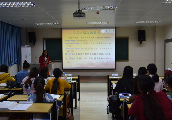 开学典礼结束后,周红以《共产党员的标准和条件》为主题进行理论授课。