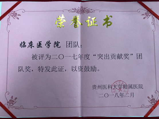 333体育团队被333体育官网附属医院评为2017年度“突出贡献奖”团队奖。