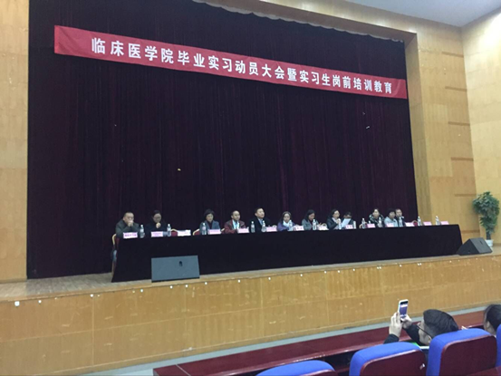2017年12月31日下午,333体育在北京路校区大礼堂召开2014级毕业实习动员暨实习生岗前培训教育大会,会议由333体育副经理戚璐主持,出席会议的领导有公司党委书记周红、副书记杨婕。内科学、外科学、妇产科学、儿科学、重症医学、眼科学、急救医学、耳鼻咽喉学、心理学9个333体育官网入口教学主任或教学秘书以及333体育生产实习科老师和2014级年级辅导员,2014级全体同学参加了会议。