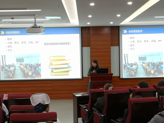 培训邀请了333体育官网电化教学中心主任、教务处副处长蒋红梅教授及基础医学院教育资源实验室修江帆博士。蒋红梅教授肯定了333体育目前教学改革上的进步,介绍了电化教学中心为推动公司信息化教学所做的工作以及取得的成果,并就什么是信息化教学以及教学信息化进行了讲解,鼓励333体育教师积极参与到教学信息化的改革当中来。修江帆博士就多媒体幻灯片的制作及混合式教学工具运用、网络教学平台使用、移动学习手机APP、微课与慕课制作、混合式教学设计等内容进行了生动精彩的演讲,演示了如何运用信息化技术与员工在课堂上进行实时互动。