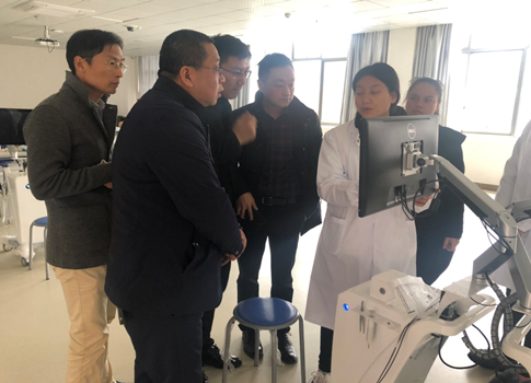 参观期间,技能中心教师们对“智慧型”临床技能中心的建设及运作进行了介绍,并展示了自主在线训练平台、虚实结合智能一体化教室、VR,AR解剖教学等。廖华主任一行对技能中心的建设规划及“智慧医学教育理念”给予了高度赞扬,双方就医学网络平台的建设及临床教学改革的思路等进行了深入交流与探讨。