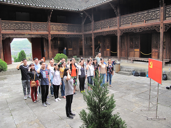 在猴场会议会址,大家在党委书记周红同志的带领下,全体党员重温了入党誓词,用高昂、奋进而又庄严的誓词表达了对党的忠诚和热爱。在红色教育基地内,大家瞻仰了红色遗址,聆听了讲解员讲解猴场会议的形成和发展历程以及老一辈革命家和先烈们积极投身革命的光辉事迹。期间还组织大家进行了党建知识竞答和素质拓展活动,现场气氛十分活跃。