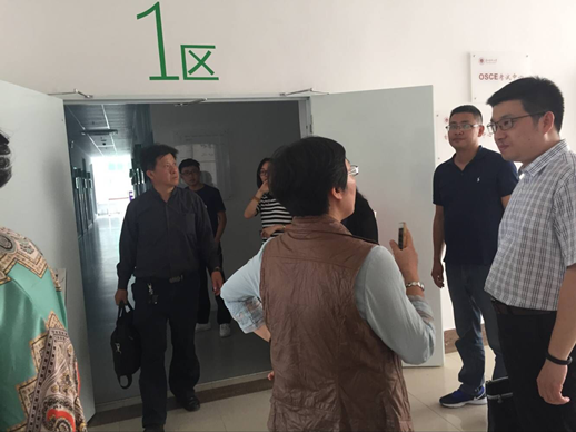 在临床技能中心,丁老师、张主任详细了解了技能考试的考场布置和考试流程等情况,对公司前期所做的工作给予了充分肯定,认为公司领导重视,组织有序,在考试轮次安排、SP病人培训等方面有很多亮点;同时也针对保密工作和场地安排等方面提出了好的意见和建议。