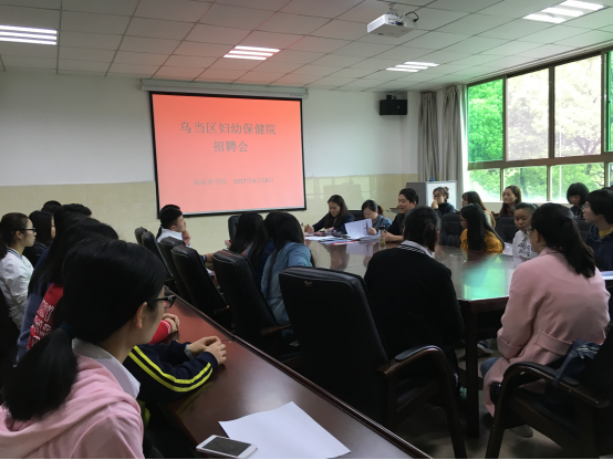 会上,黄经理首先详细介绍了乌当区妇幼保健院的背景、新院建设、薪资待遇、社会保障及应聘要求等有关事项。接着,陈圆圆老师进行了动员。最后,同学们结合自己的专业及职业发展与医院老师进行了互动交流。在医院招聘人员与毕业生双方深入了解后,33名同学向医院递交了个人简历并将于4月20日下午到医院参加面试及体检。