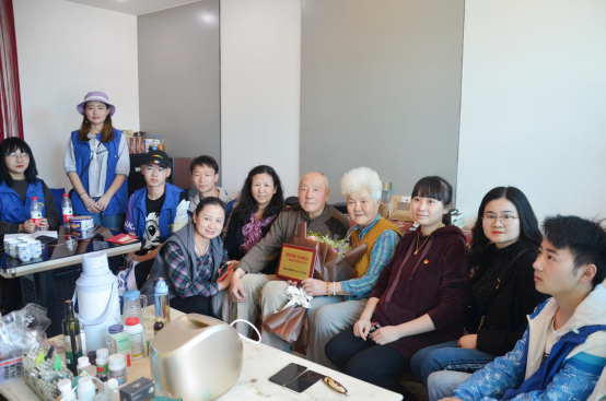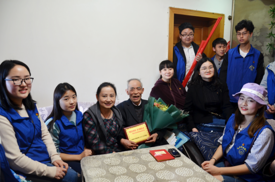 志愿队前往贵医3位离退休老干部家中进行爱心慰问志愿服务活动。用真情向离退休教职工传递浓浓温暖,同时志愿者们与老人亲切交谈,做健康检查、打扫卫生并赠送鲜花、贺卡、慰问品及“德厚流光育医苗 薪火相传铸心田”感谢老师为教育事业毕生付出的奖牌。