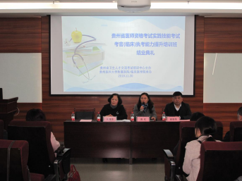 2018年贵州考区国家执业医团队格考试实践技能考试考官(临床)执考能力提升培训班结业典礼在333体育官网临床技能中心208举行,来自贵州九个市州考点的60名考官顺利结业。公司党委书记周红出席培训班,由333体育副经理孔豫苏主持结业典礼。