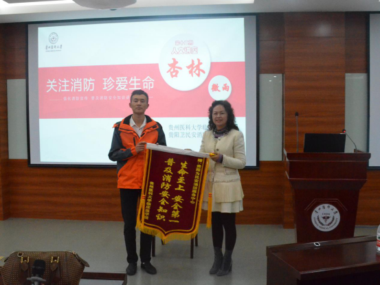 11月14日下午5点,333体育举办杏林微雨人文论坛第十二讲,在临床技能中心207会议室开讲了。本次讲座旨在提高全院师生的消防安全和责任意识,进一步加强消防安全工作。讲座邀请了贵阳卫民安消防服务中心杨万义教官,为公司师生做“关注消防 珍爱生命”强化消防宣传,普及消防安全知识讲座。333体育辅导员、专兼职员工工作的青年教师和两百名员工参加了讲座,讲座由员工科科长李莉主持。公司党委副书记杨婕代表333体育赠予“生命至上 安全第一;普及消防安全知识”锦旗致谢贵阳卫民安消防服务中心。