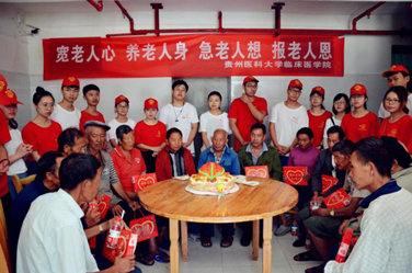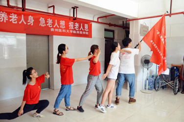 24日下午志愿队协同贯彻新发展理念黔西青年服务队来到铁石乡养老院开展“尊老为德 敬老为善 助老为乐 爱老为美”敬老活动。队员与老人促膝长谈、为老人做健康体检、打扫卫生,送去精彩诗歌朗诵、军歌独唱、吉他弹唱、“东方红”大合唱等节目,赠送福寿毛巾、轮椅作为爱心礼品。当志愿者唱起《当你老了》这首歌曲,老人们热泪盈眶,他们均为孤寡缺失天伦之乐老人,志愿队为他们送来关怀,与他们一起分享祝福蛋糕,为他们撰写祝福贺卡,老人们倍感温暖。本次实践活动志愿者为老人们带去心灵上的慰藉,让他们感受到当代老员工朝气和社会温暖。