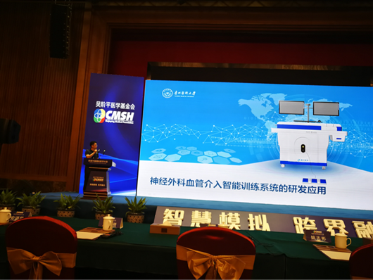 会上向欣主任代表公司以神经外科血管介入智能训练系统为主题进行专题报告,田静文教授代表公司就模拟中心建设、使用和管理进行专题座谈与分享,向各与会人员详细的介绍了公司临床技能中心建设条件与使用情况并对目前面临的主要问题与各位专家进行讨论。本次会议的参与提升了公司在全国模拟医学领域的影响力,使年轻教师逐渐转变医学教学意识,参与并热爱模拟医学,进而极大的促进临床教学的发展。