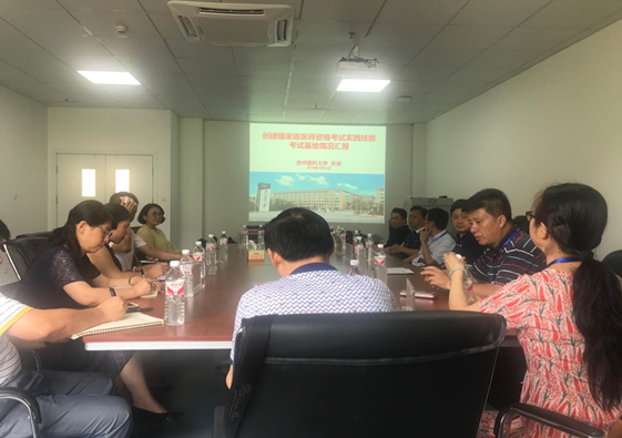 7月11日上午9时贵州省卫计委医政医管处王惠明调研员,贵州省医团队格考试领导小组办公室副主任、省卫生人才交流考试培训中心张涌主任、副主任邹鸣带领省有关专家一行莅临公司333体育临床技能中心进行国家级医团队格考试实践技能考试基地的省内初评工作。333体育常务副经理孙发、党委书记周红、副经理艾戎、临床技能中心主任田静文及相关工作人员参加。