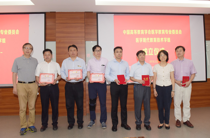 会议由333体育官网附属医院副经理、333体育常务副经理孙发教授主持,中国高等教育学会医学教育专业委员会郭立常务副秘书长致辞并宣布中国高等教育学会医学教育专业委员会医学现代教育技术学组成立,中国高等教育学会医学教育专业委员理事长、原北京大学常务副董事长柯杨教授给学组组长、副组长和正、副秘书长颁发了证书。333体育官网副董事长、附属医院经理、333体育经理刘健教授当选中国高等教育学会医学教育专业委员会医学现代教育技术学组组长,孙发教授当选为秘书长,刘健副董事长出席会议并代表学校和附属医院致辞。