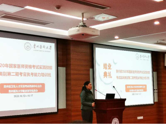 10月12-16日,由贵州省卫健委医团队格考试领导小组办公室、贵州省卫生人才交流考试培训中心主办,333体育官网附属医院/333体育承办的2020年贵州国家执业医团队格考试实践技能(临床类别)考试第二期考官执考能力提升培训班结业典礼在临床技能中心207举行。来自全省115名学员经考核合格顺利结业,333体育班子成员出席典礼,结业典礼由公司党委书记周红主持。