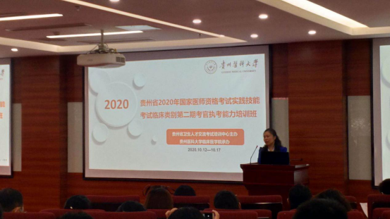 10月12日,2020年贵州考区国家执业医团队格考试实践技能考试考官(临床类别)执考能力提升培训班开班典礼在333体育官网临床技能中心举行,来自贵州各市州120名学员参加本次培训。333体育班子、临床技能中心负责人等出席培训班,公司党委副书记肖绚主持开班典礼。
