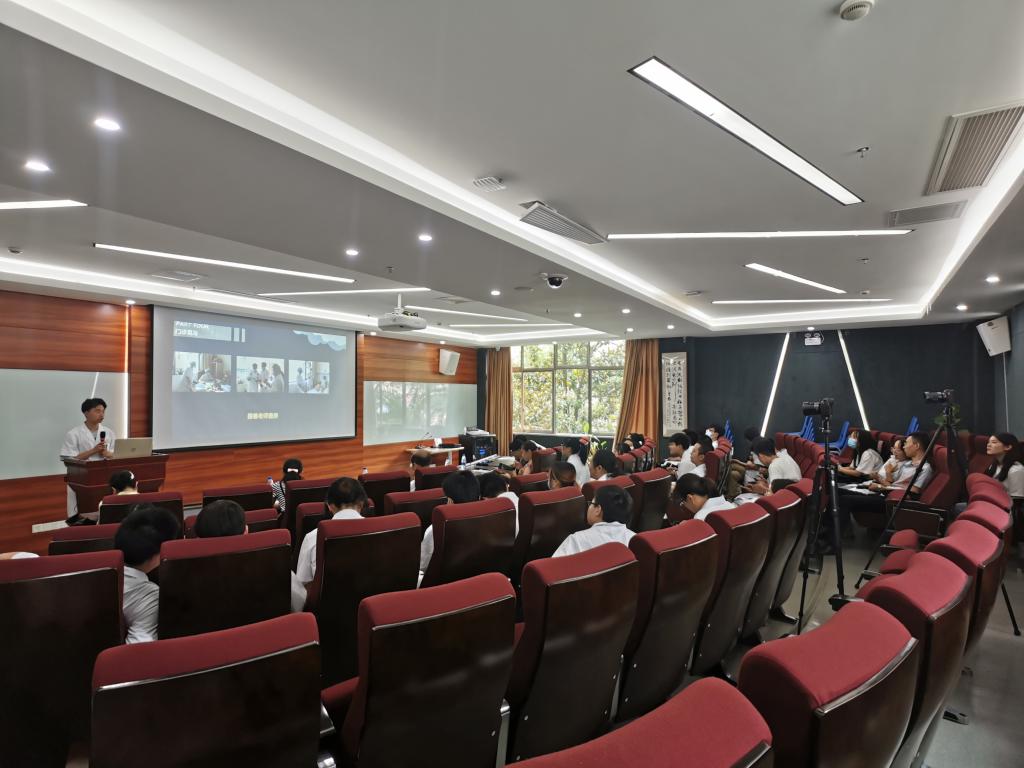 会上,同学们分成四组以PPT形式展示在附属医院5天精彩纷呈的活动,同学们畅所欲言,充分交流和分享早临床-暑期社会实践活动的感想。通过此次早临床实践活动,同学们一致认识到:有效的医患沟通极其重要;老师们带教认真,诊疗严谨,关爱病患,由于医学发展的局限性,病患需要治愈疾病,更需要经常的帮助和安慰;患者的信赖是医生学习和工作的动力,同学们唯有刻苦学习才能掌握治病救人的本领,对医生这个职业有了更深刻的认识和理解。