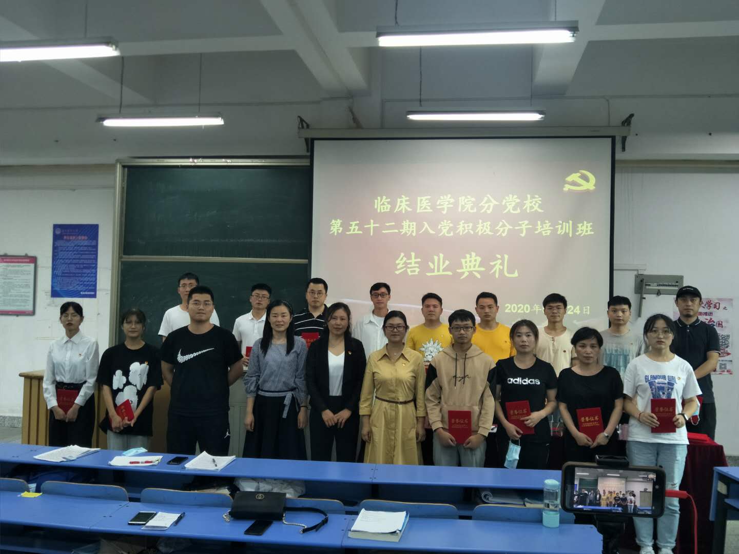 结业典礼在庄严的国歌声中开始。临床医学2017级姚楠同学作为优秀学员代表发言。表示在今后的工作与生活中,以优秀的共产党员为榜样,努力学习、不断提高自身素质,争取早日加入中国共产党。周红在总结了本次培训班的特点,并对于学员们提出三点希望:一是在学习上要认认真真,有新收获;二是在做事上要踏踏实实,有新成就;三是在做人上要堂堂正正,有新境界。肖绚宣布了优秀学员名单,出席结业典礼的领导为优秀学员颁奖并合影留念。