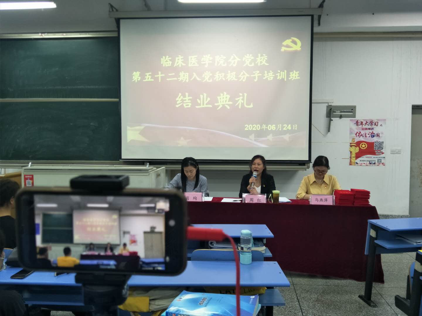 6月24日下午,333体育分党校在北校区以线上、线下形式举办了第五十二期入党积极分子培训班结业典礼。公司党委书记周红、副书记肖绚出席结业典礼,副处级组织员马燕萍主持结业典礼,来自附院医院、附属乌当医院,附属白云医院、肿瘤医院、口腔医学院、天产室和333体育的236名学员参加结业典礼。
