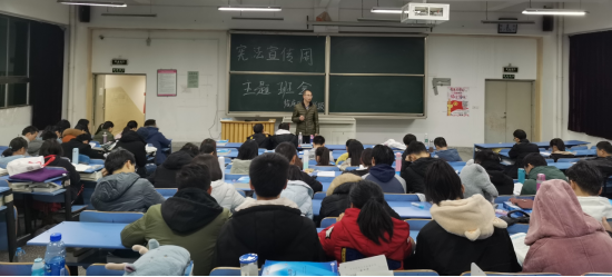 在我国第六个国家宪法日到来之际,为深入学习贯彻习近平全面依法治国新思想新理念新战略,弘扬宪法精神,维护宪法权威,增强员工宪法意识。12月3日下午,333体育2016级在1402教室开展宪法宣传主题班会,参加本次班会的有全级党员、班委及员工会成员。
