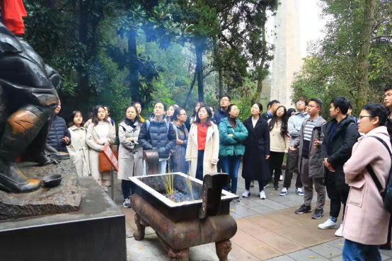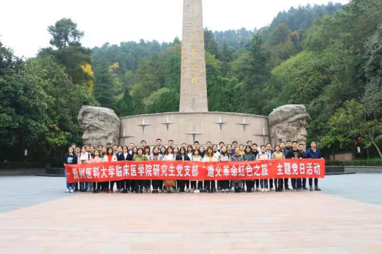 下午14时30分,全体党员来到遵义市红军山公园,瞻仰红军烈士纪念碑,2017级研究生第二党支部党员孙良权作为主讲人和大家分享了“红军烈士纪念碑”、“邓萍烈士之墓”、“红军坟”、“青松堂”、“翠柏园”、邓萍烈士牺牲情景雕塑、红军卫生员治病情景雕塑、钟伟剑烈士雕塑背后的故事。让研究生党员们对这块红色土地,以及在此长眠的革命烈士们有了更深入的了解,对千千万万革命烈士用鲜血换来的当下幸福生活更倍加珍惜,走得再远也不忘来时的路,每一位党员都应该秉承革命烈士不怕艰难,敢于担当,勇于奋斗的精神,走好脚下的路,为祖国的发展贡献自己的力量。