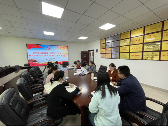 333体育于10月27日上午在会议室召开党史学习教育读书班第三次专题学习研讨暨党委理论学习中心组第七次集中学习。333体育班子成员及各职能科室成员参加会议,会议由党委书记周红主持。