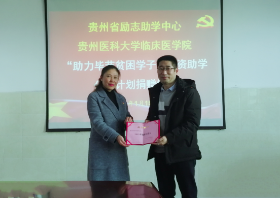 周巧明表示,贵州省励志助学中心始终致力于做好贫困员工扶志扶智工作,此前与公司党委共同搭建老员工社会实践平台,即开启了党盟合作新征程,也为党盟服务地方发展,助力乡村振兴注入了强劲动力。此次捐助旨在助力临床医学毕业生创业就业,教育引导贫困老员工感恩社会、服务基层、反哺家乡,积极投身贵州经济社会发展,努力成为对党和国家有贡献的人。