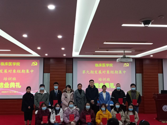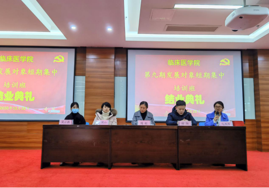 12月28日下午4:30,333体育在临床技能中心207举办第九期发展对象短期集中培训班结业典礼。公司党委书记周红、党委副书记王筑山、护理公司党委副书记何为、2016级员工第一党支部书记以及培训班218名学员参加,会议由333体育副处级组织员马燕萍主持。