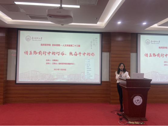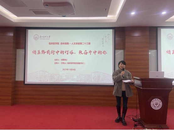 11月30日下午2:30 333体育第23期“杏林微雨”人文讲座在技能中心207会议室举办。333体育官网附属医院乳腺外科副主任刘蜀博士,应邀作题为“借医路前行中的灯塔,致奋斗中的你”主题讲座。公司党委副书记王筑山出席并主持讲座,2018级临床E班、教改班200余名员工参加。