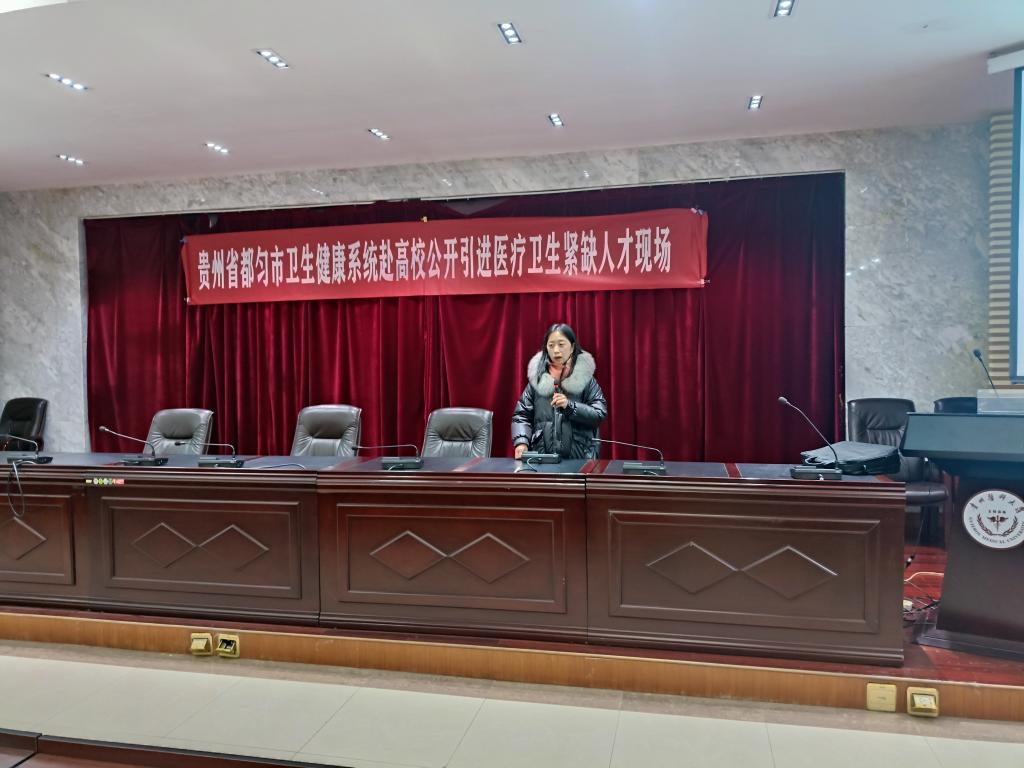招聘会上,都匀市委组织部副部长陈定锦介绍了都匀市医疗紧缺人才引进的相关要求及待遇情况,都匀市卫生健康局副局长王玉梅对都匀市医疗人才培养体系做了详细介绍,表达了对人才的期盼,充分展现爱才诚意。
