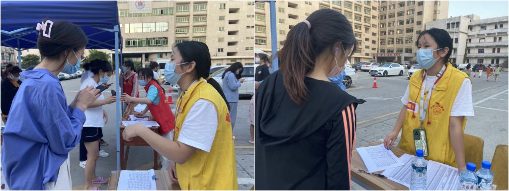 亮身份、践初心、当先锋。关键时刻党员同志充分发挥党员先锋模范带头阻击疫情的作用,配合核酸采样人员完成测温限流、秩序维护、登记引导等志愿服务工作,科普核酸检测、饮食建议、新冠疫苗等医学专业相关知识,形成抗疫最强合力,忠诚捍卫贵医师生的生命健康。党员志愿者们勇于吃苦、不惧风险,处处展示出“全院一盘棋”的大局意识和“抗疫必定有我”的奉献精神,使得疫情防控工作有条不紊的进行。