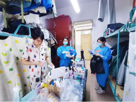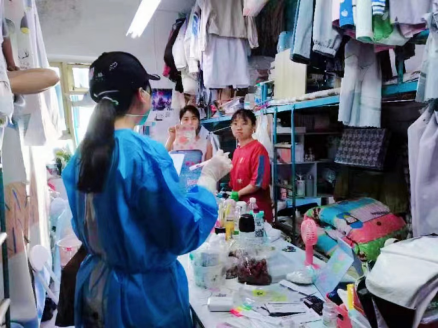 本次工作采取教师楼层负责制,志愿者分包到人的工作方式,教师及员工志愿者在接受培训后进入员工寝室发放检查试剂盒,并协助员工完成自检及上传登记等程序。为提高员工自测效率,教师及志愿者耐心提供“一对一”服务,工作有条不紊、忙中有序,顺利完成每天3300余人次抗原检测任务。在守护师生生命安全和身体健康过程中发挥了应有的作用,体现了责任和担当。