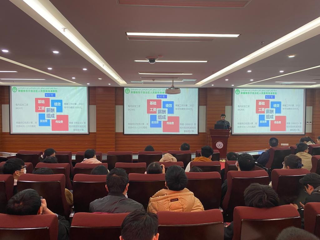 洛浦县人民医院人力资源部副主任阿卜杜曼南·阿卜力克木通过PPT展示、宣传片等方式向同学们介绍了医院的概况、岗位要求、工资福利、入职流程,并通过交流互动的形式对同学们关心的问题进行了详细的说明。医公司党政办主任高顶华也和同学们分享了自己作为贵州人扎根新疆的切身感受,他那见证新疆发展的自豪,令同学们既动容又钦佩。