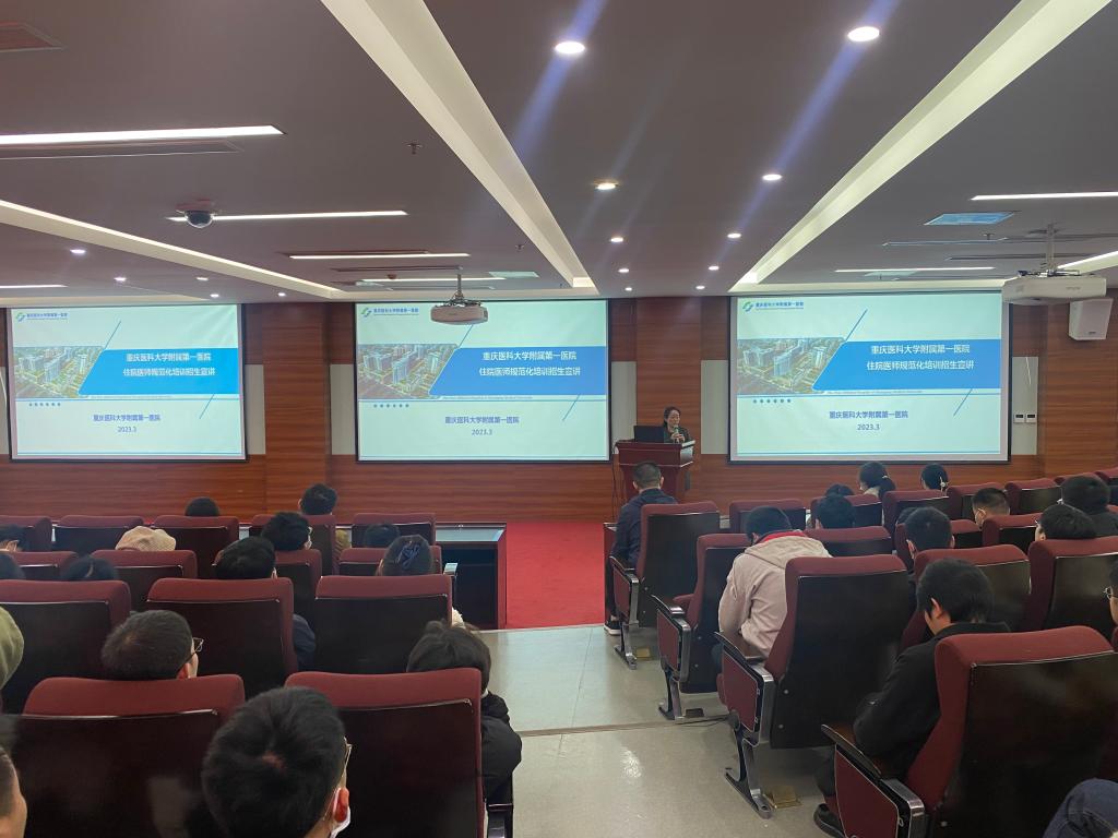 重庆医科大学第一附属医院周老师从医院概况、毕业后教育情况、住院医师规范化培训、学员待遇、招生情况五个方面进行了精彩宣讲。同学们热情高涨,踊跃提问相关规培问题,争取和规培专家对话和交流的机会。周老师对同学们提出的各种问题,都一一给予了耐心的解答和指导。