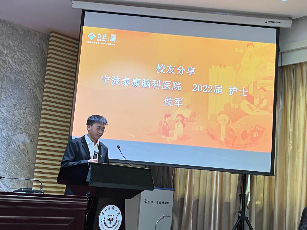 杨志军对医院的概况、岗位要求、工资福利、职业前景等情况进行了详细介绍,对学校医员工培养质量给予高度评价。他表示,希望以此次宣讲会为契机,能够保持与学校的长期合作,越来越多的贵医毕业生进入医院工作,为医院快速发展做出积极贡献。随后,侯军作为贵医员工,分享了在泰康的经历和心得。现场气氛热烈,在交流答疑环节,同学们积极提问,几位医院工作人员细心解答。