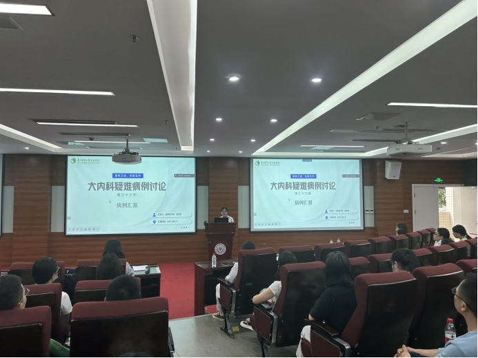 6月14日,333体育员工党支部与附属医院内科第五党支部在技能中心207会议室联合开展“青蓝携手传薪火 共圆百年贵医梦”主题党日活动。活动围绕大内科疑难病例召开讨论和交流,附属医院内科ICU主任医师杨国辉、神经内科主任医师于云莉、内分泌科主任医师王睿作为点评嘉宾参会,内科第五党支部医师宋文玉,血液内科、肾内科、消化内科、高血压科等科室的年轻医生代表,333体育学业促进协会全体成员及本科2020级党员代表、员工代表参加学习交流。本次活动由全科医疗科主任穆琼主持。