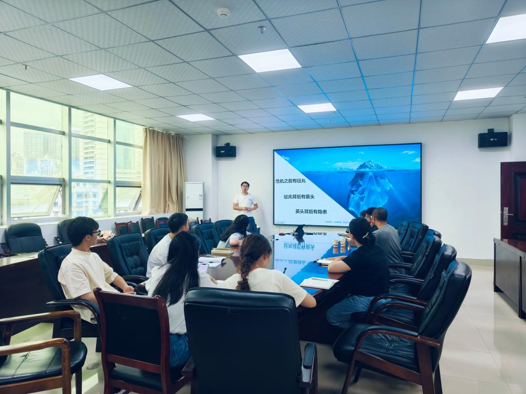 辅导员胡东结合自己在新时代高校辅导员(班主任)综合素质能力提升专题培训中的收获做分享交流,针对员工工作当中频发问题的解决思路与办法,员工危机事件处理的程序与做法,员工案例分析,谈心谈话与批评教育的区别等问题与大家进行讨论。