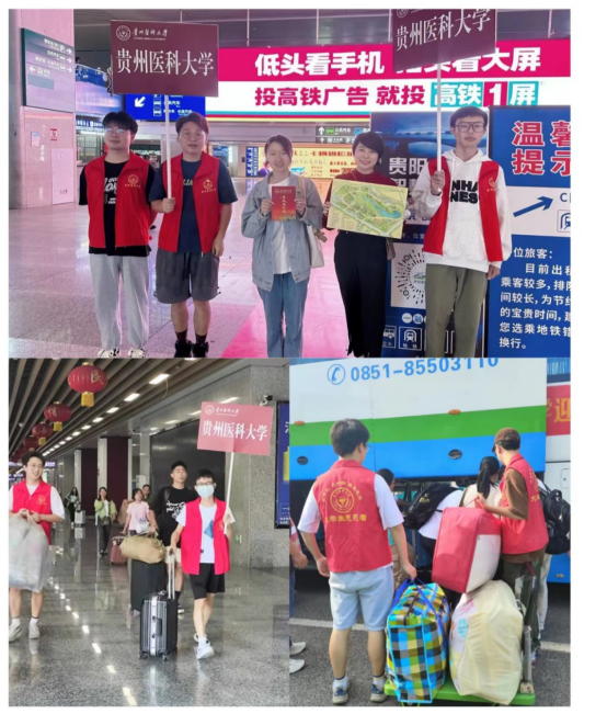 要求全体老师及志愿者充分认识迎新工作重要性,以饱满的热情、积极的态度,充分展现贵医面貌,认真做好接站服务和研究生迎新工作。9号上午8点,负责迎新的教师及员工志愿者准时到达贵阳北站接站点。公司党委副书记王筑山现场指导迎新接站工作,确保各项工作稳妥有序进行。接站老师及志愿者们热情引领新生前往返校大巴,积极帮助搬运行李,与新同学亲切交谈,耐心答疑解惑,并提醒新同学做好个人安全防护。在贵阳北站新生接站工作如火如荼开展的同时,位于北校区和云漫湖校区的研究生迎新工作也在紧张有序进行。研究生辅导员及志愿者们早早就搭建好了帐篷,张贴好学院标识,帮助每一位新生办理报到登记、档案收取、户口迁移和住宿安排等相关手续,为他们答疑解惑。