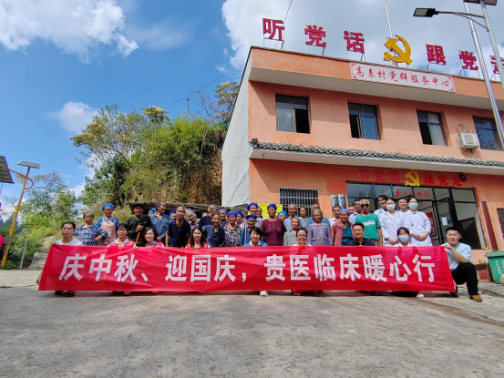 9月27日,333体育前往榕江县寨蒿镇高表村探望公司2023届选调生杨志胜,并携手贵州省励志公益发展中心在该村开展以“庆中秋、迎国庆,贵医临床暖心行”为主题的慰问及义诊实践活动。公司党委副书记王筑山及贵州省励志公益发展中心秘书长周巧明带队,333体育官网附属医院全科医疗科主治医生姚林、郭克依,333体育老年医学专业、内科学专业、临床医学本科生共计15人前往开展本次活动。